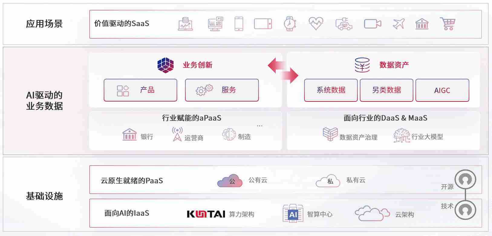 数字时代,,围绕企业数字化转型的关键要素,,z6尊龙数码开创性的提出数云融合战略和技术体系框架,,,,着力在云原生、、数字原生、、、、AI原生和信创产业上架构产品和服务能力,,,为处在不同数字化转型阶段的快消零售、、、汽车、、、金融、、医疗、、政企、、、教育、、运营商等行业客户提供泛在的敏捷IT能力和融合的数据驱动能力,,构建跨界融合创新的数字业务场景和新业务模式,,,助力企业级客户建立面向未来的核心能力和竞争优势,,全面推动社会的数字化、、智能化转型升级。。。